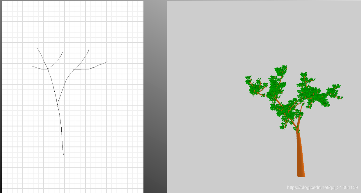 下面给出我尝试过的获得树木的骨架的几种方法:图一为分形树(使用L-system),图二为基于草图建树,图三为基于点云生成树。