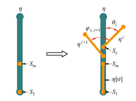我们在η中选择一个点Sm,把从S1到Sm作为一个子枝干,通过旋转平移添加到η中,从而实现了分支的拓展。